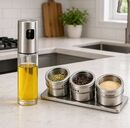 Combo Aceitera difusor + Set de eEspecieros magnéticos ideal para organizar y condimentar tus comidas con practicidad y estilo. Incluye un rociador pulverizador de aceite, vinagre o aceto con capacidad de 100 ml, fabricado en vidrio resistente con diseño compacto de 18 cm de alto, que permite aplica...