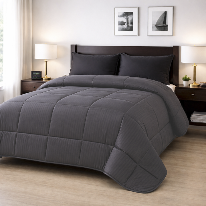 Somos UNA CASA MIL HOGARES, y disfrutamos acompañarte día a día en tu hogar con productos de la mayor calidad, super funcionales y perfectos para decorar ambientes!! Acolchado 2 1/2 con fundas Dobby Rayas - Medida 220x240 cm. Sirve para 2 1/2 plazas. - Incluye 2 fundas de almohada de 70x50cm. - Idea...