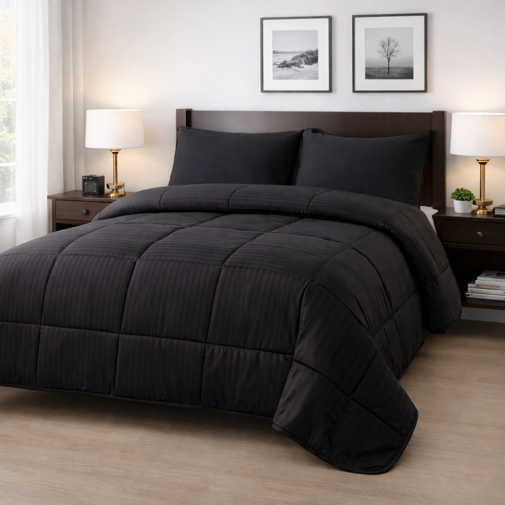 Somos UNA CASA MIL HOGARES, y disfrutamos acompañarte día a día en tu hogar con productos de la mayor calidad, super funcionales y perfectos para decorar ambientes!! Acolchado 2 1/2 con fundas Dobby Rayas - Medida 220x240 cm. Sirve para 2 1/2 plazas. - Incluye 2 fundas de almohada de 70x50cm. - Idea...