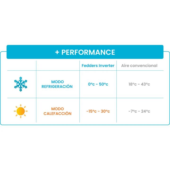 Aire acondicionado Fedders Split con tecnología Inverter y 3500W de potencia. Función frío/calor, diseñado para mayor eficiencia energética y confort.