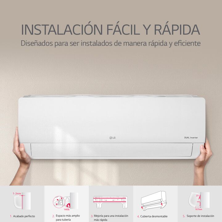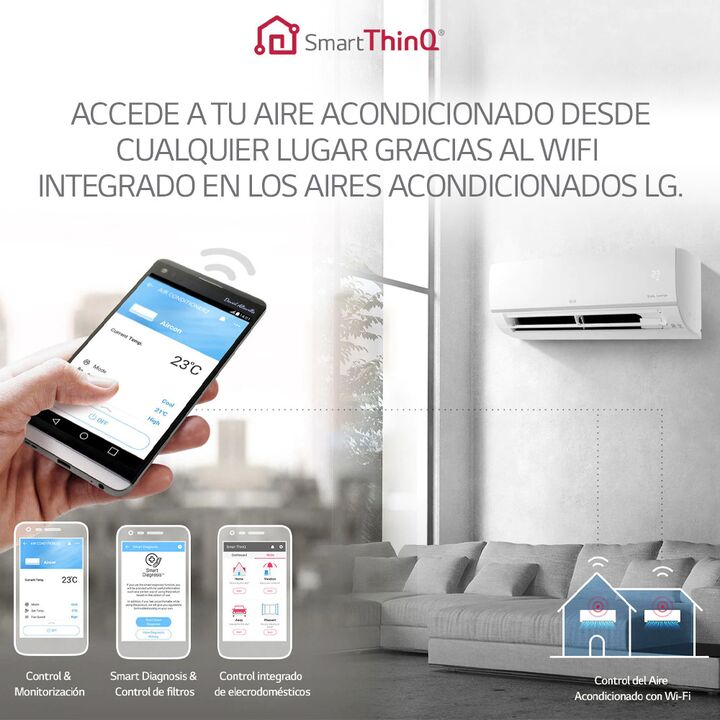 Aire Acondicionado Inverter DUALCOOL WiFi Frío/Calor 6000 Frigorías -Compresor Dual Inverter 10 años de garantía -Hasta 70% ahorro energético y hasta 40% enfriamiento rápido -WiFi LG THINQ -Diseño delgado y simple -Enfriamiento hasta 40% más rápido - Eficiencia energética: A++ CARACTERÍSTICAS GENERA...