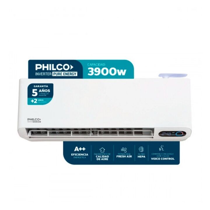 Experimentá Un Aire Distinto con el Aire Acondicionado Inverter Pure Energy 3900W Philco, diseñado para revolucionar tu confort y cuidar el ambiente. Este equipo combina tecnología, eficiencia y bienestar para transformar cualquier espacio en un ambiente único. Su modo FRESH AIR permite ingresar air...