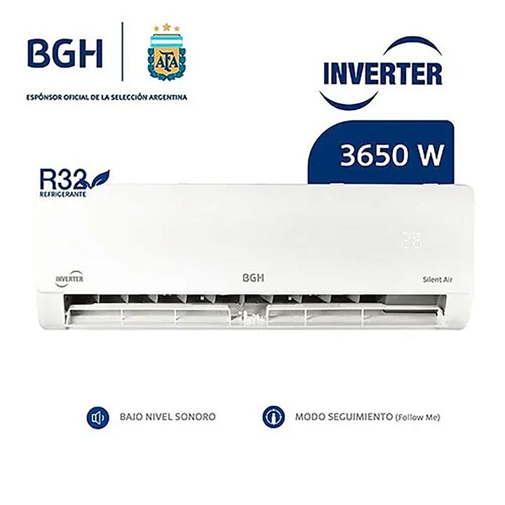 Aire Acondicionado Split BGH Inverter BSI37WCNX Frío/Calor 3700WEl Aire Acondicionado Split BGH BSI37WCNX combina tecnología de vanguardia y máxima eficiencia para ofrecerte el confort ideal en cualquier estación del año. Con una capacidad de 3650W en frío y 3700W en calor, y el sistema Silent Air I...