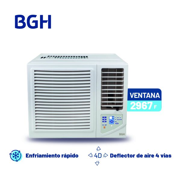 Aire Acondicionado Ventana Frío BGH 3000 Frigorías Características principales: - 3000 frigorías, ideal para ambientes medianos. - Clase A en eficiencia energética. - Oscilador de aire automático y filtro antipolvo. - Función sueño y temporizador 24 hs. - Renovación de aire y auto restart. El aire a...