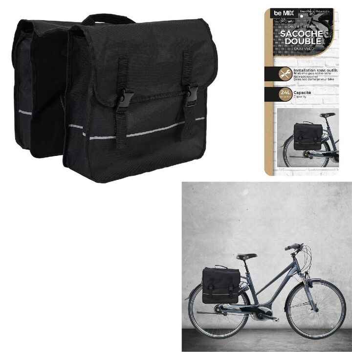 Alforjas Dobles Para Bicicleta 24 Lts Be Mix VL0021 Caracteristicas: ¿Necesitas más espacio para llevar tus cosas? Esta bolsa doble de aspecto deportivo se adapta al portapaquete trasero de tu bicicleta. - Capacidad: 24L - Dimensiones: 30x12x34 Cm - Color: Negro Garantia: 12 Meses La presente public...