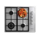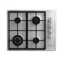 Anafe a gas empotrable. Color acero inoxidable. Encendido eléctrico a una mano. Su mesada es de acero inoxidable con borde antiderrames. Sus parrillas son de hierro fundido para una mayor resistencia. Posee 4 zonas de cocción multitamaño selladas: 1 triple ring, 1 jumbo y 2 estándar. La hornalla tri...
