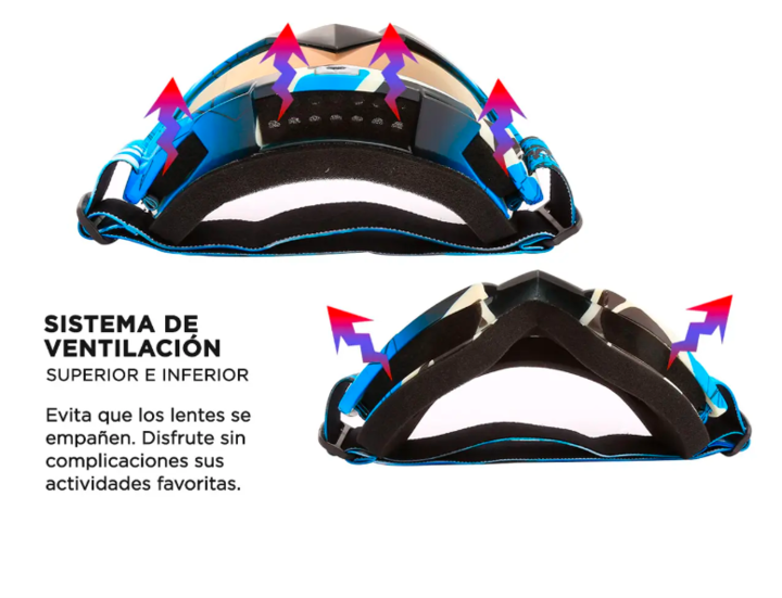 Antiparras con Protección UV y Tecnología Anti-Niebla Estas antiparras ofrecen 100% de protección contra los rayos UV y lentes con protección UV400, asegurando máxima seguridad frente al sol. Incorporan tecnología anti-niebla, ideal para cualquier actividad, y una banda elástica ajustable para adapt...