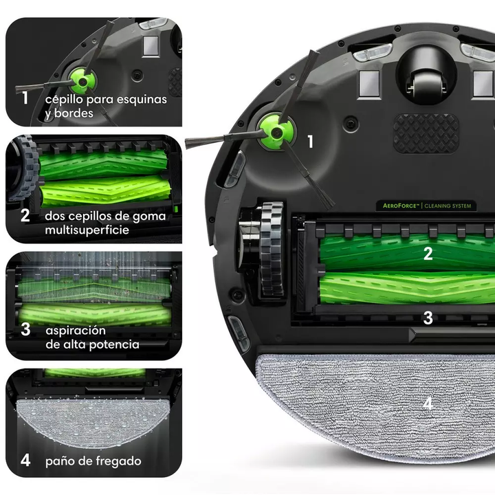 Aspiradora y Trapeadora Robot iRobot Roomba Combo i5 I517020 El robot aspirador y friegasuelos Roomba Combo® i5 navega en filas ordenadas para limpiar a fondo cada habitación. Coloca el depósito Roomba Combo® para que elimine la suciedad y el polvo mientras recoge los residuos. Características: Rean...