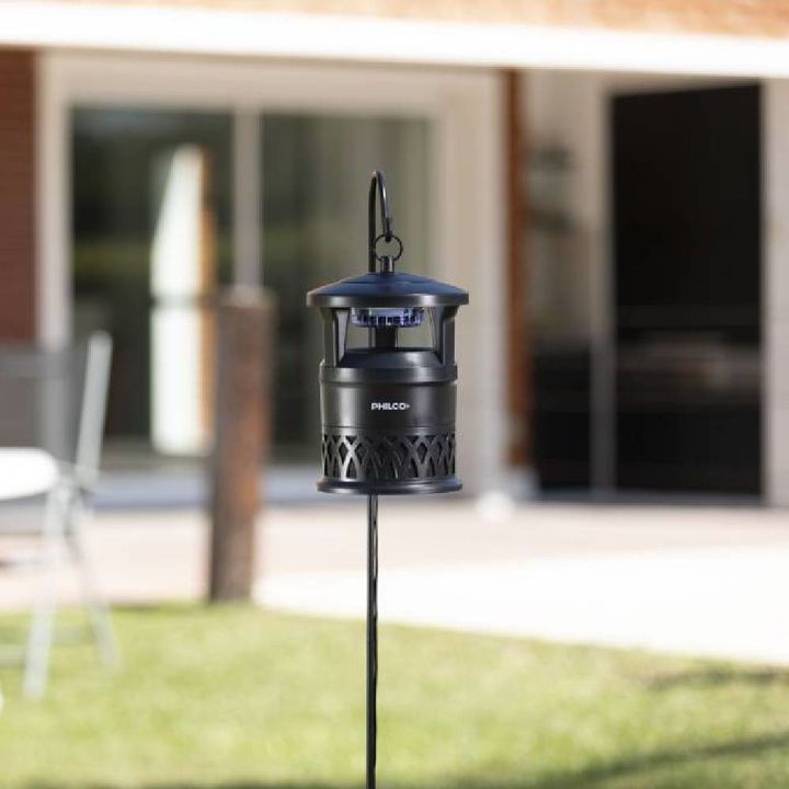 Atrapa Insectos De Interior y Exterior Tipo Farol Negro Philco PHLR970WPI Caracteristicas: *Uso de interior y exterior *Fuente de Luz UV-CCFL de 365 nm *Recubierto con TiO2 CO2 se produce por catálisis *Resistencia a la intemperie IPX4 *Compuerta neumática previene que los Insectos escapen *No utili...