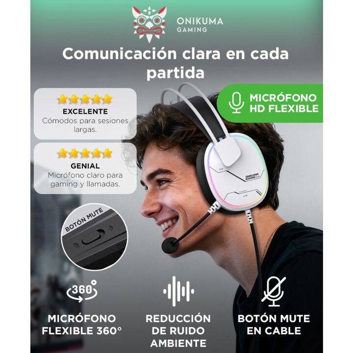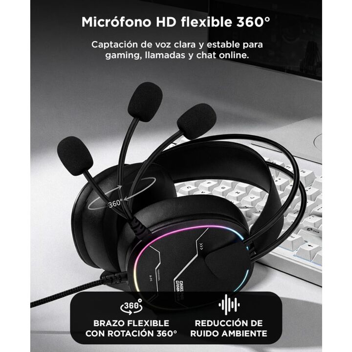 Comunicación precisa con micrófono HD flexible: El Auricular Gamer Onikuma X91 incorpora micrófono de alta definición con brazo flexible 360°, diseñado para captar la voz con claridad y reducir ruidos no deseados durante partidas online, llamadas o streaming. Sonido envolvente para una experiencia i...