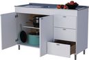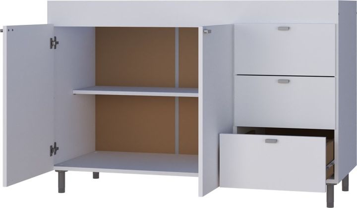 BAJO MESADA 120CM 4028 BLANCO MUEBLES ORLANDI -3 cajones -2 puertas -Correderas plásticas -1 estante -Patas regulables en altura -Cajonera derecha/izquierda -Melamina de 15 mm -Medidas (AnxAlxProf)1200x800x470 mm -Color Blanco -FOTO ILUSTRATIVA / NO INCLUYE TAPA MESADA DE ACERO INOXIDABLE -Modelo 40...