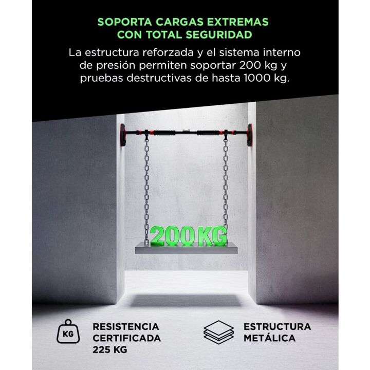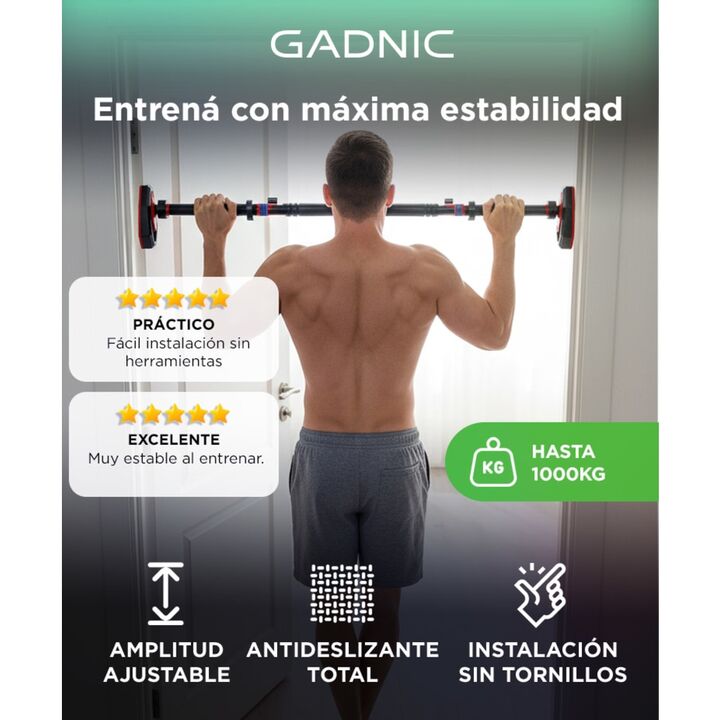 Estabilidad extrema para entrenar con total seguridad: La barra para dominadas de Gadnic está diseñada para soportar cargas reales de hasta 225 kg, con pruebas destructivas de 1000 kg que garantizan su durabilidad. Su estructura reforzada permite entrenamientos intensos sin movimientos indeseados, i...