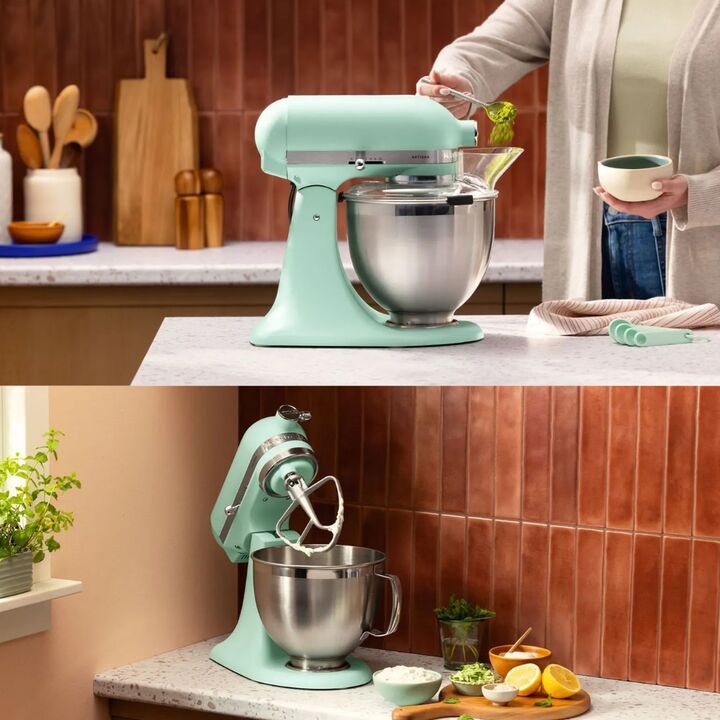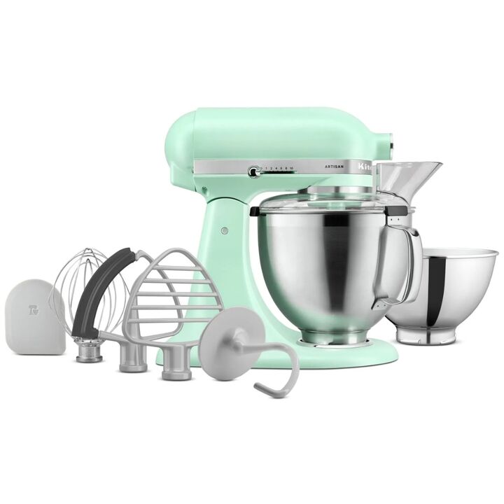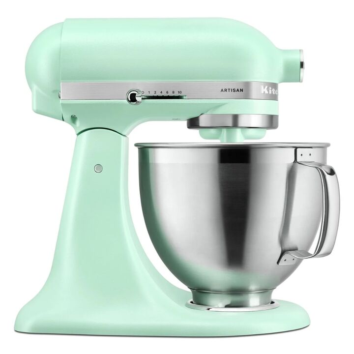 Batidora Artisan Plus KitchenAid Spearmint 4.8 Lts - RKSM195PSRSD EMBLEMA DE DISEÑO Y RENDIMIENTO La Stand Mixer Artisan fue creada para alcanzar una impecable performance,de cómodo manejo y fácil limpieza gracias a su diseño liso y redondo. Permite regular la velocidad en 10 posiciones diferentes l...