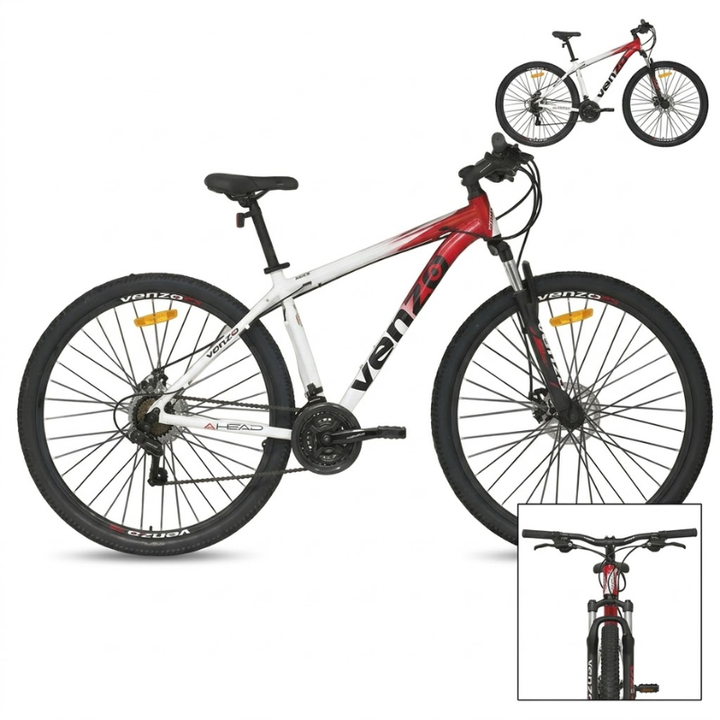 Bicicleta MTB Venzo Ahead 21V R29 Blanco/Rojo Disco Mec. Talle L