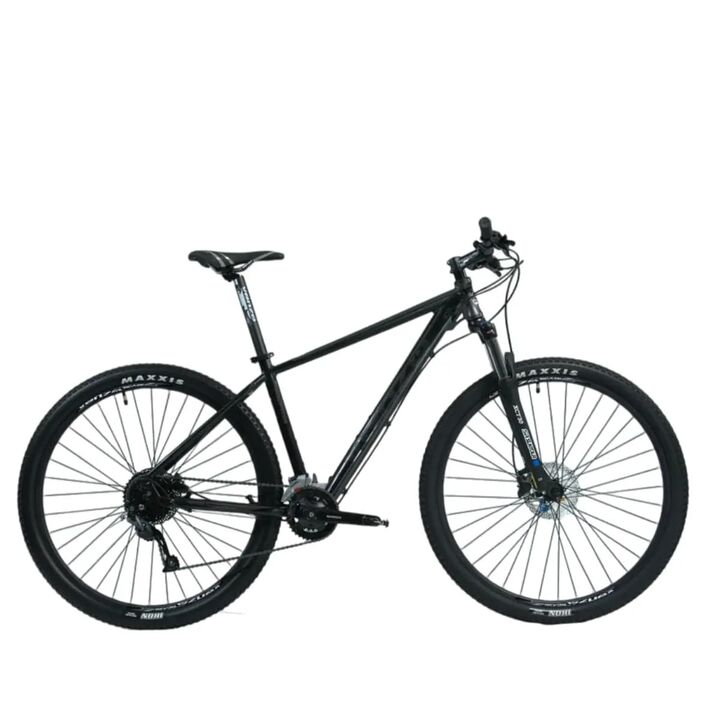 Bicicleta MTB Venzo Raptor EXO 1.8 Rodado 29”, con cuadro de aluminio 6061 liviano y resistente. Equipada con horquilla SR Suntour XCT 30 con 100 mm de recorrido, bloqueo manual y regulación, ideal para un manejo versátil en todo tipo de terrenos.