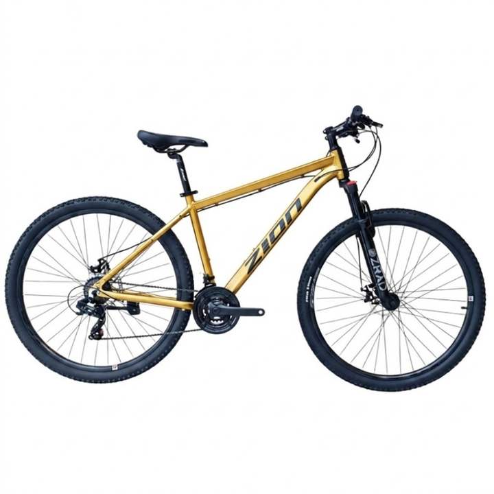 Bicicleta MTB Zion Aspro, ideal para uso recreativo y urbano. Equipada con transmisión Shimano Tourney 3x7 velocidades, cambio trasero Tourney y descarrilador TZ, con piñón indexado de 7 coronas para un rango versátil.