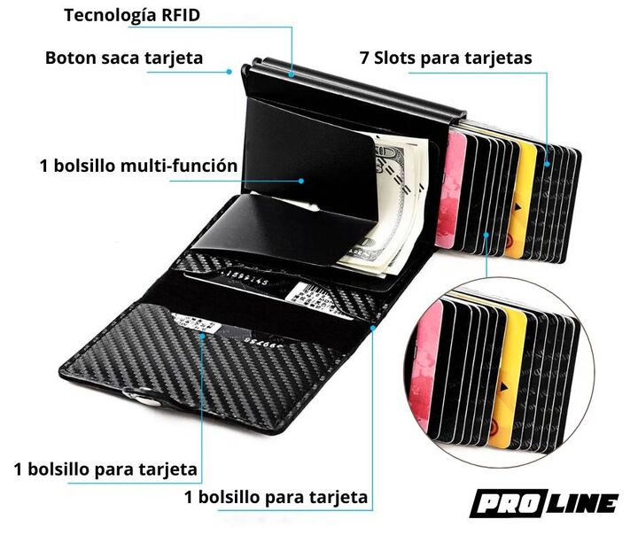 BILLETERA TARJETERO NEGRO - PROLINE La Billetera Tarjetero Proline negra es un accesorio compacto, elegante y funcional, ideal para organizar tarjetas, documentos y dinero de forma práctica. Su diseño moderno y tamaño reducido la convierten en una excelente opción para el uso diario. Características...