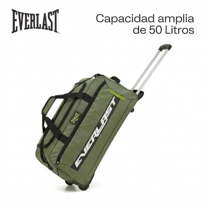 BOLSO DE VIAJE EVERLAST CON RUEDAS Y MANIJA - 50 LTS El Bolso Carro Everlast para Viajes es la solución ideal para quienes buscan comodidad y funcionalidad en sus desplazamientos. Con una capacidad de 50 litros, este bolso es perfecto para llevar todo lo necesario en tus aventuras, ya sea un viaje c...