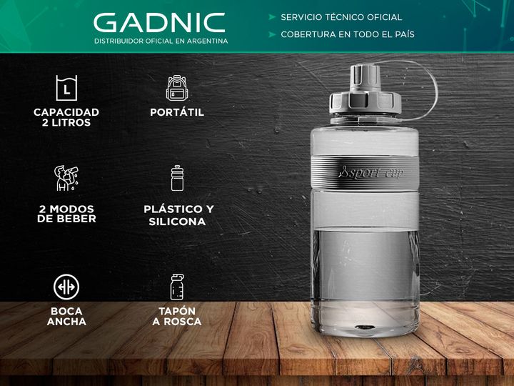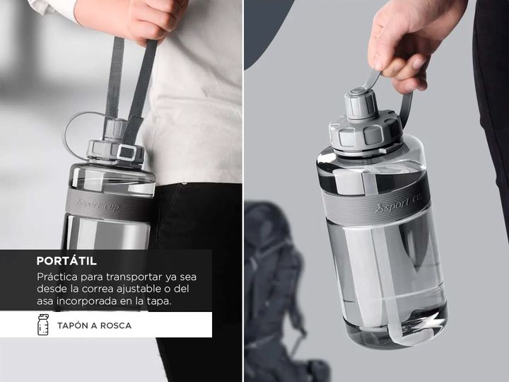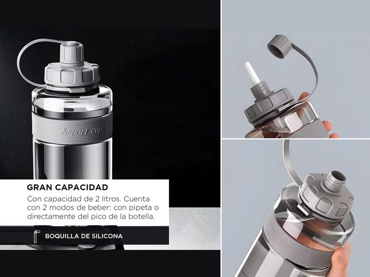 Descubrí la última innovación en hidratación con nuestra botella deportiva, diseñada para satisfacer tus necesidades activas con estilo y funcionalidad. Con una generosa capacidad de 2 litros, esta botella es ideal para mantenerte hidratado durante tus entrenamientos intensos, caminatas largas o cua...