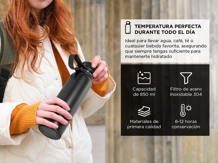 Descubrí la botella térmica perfecta para mantener tus bebidas a la temperatura ideal en cualquier momento y lugar. Con una capacidad de 850 ml, es ideal para llevar agua, café, té o cualquier bebida favorita, asegurando que siempre tengas suficiente para mantenerte hidratado. Gracias a su avanzada ...
