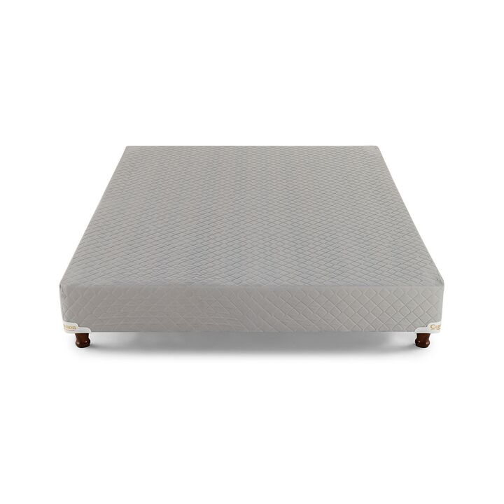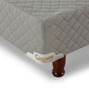 Base de madera estacionada cubierta con espuma de alta densidad. Tapizados en tela de Algodón Polyester, totalmente matelaseado. Patas de madera torneadas y laqueadas.