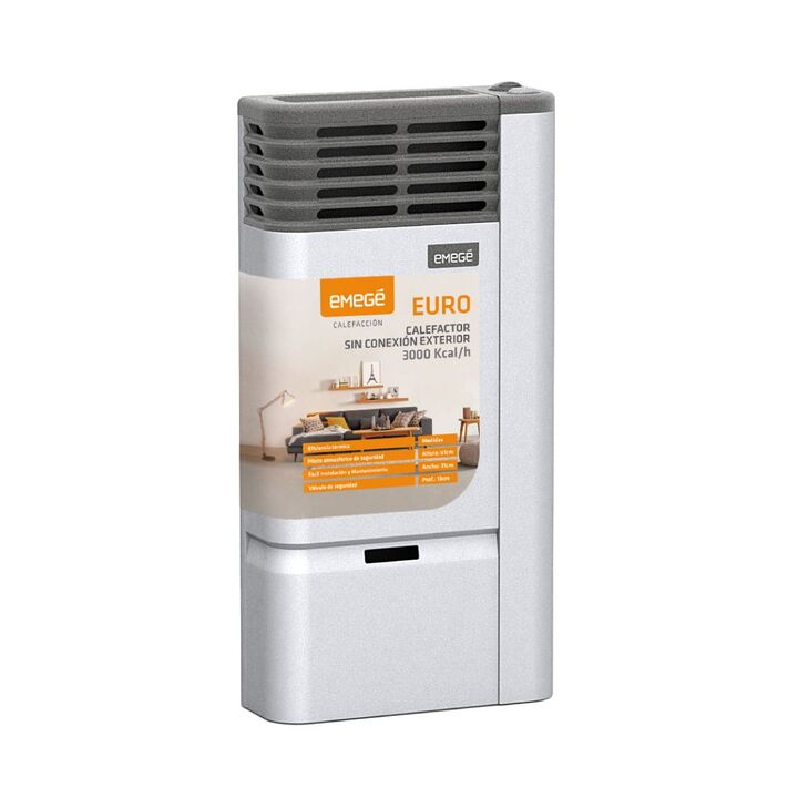 Frente frio para mayor seguiridad .3000 KCAL/H. Salida de calor frontal y superior. PIEZOELECTRICO. Camara enlozada alta eficiencia calorica. Calefacciona por conveccion natural. Encendido integral y Válvula de seguridad. Piloto analizador de oxigeno