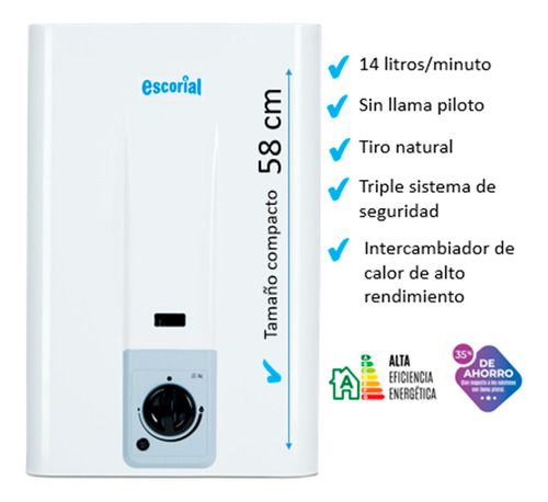 Calefon Escorial Ce-14l Gas Natural 14lts Apagado Automatico