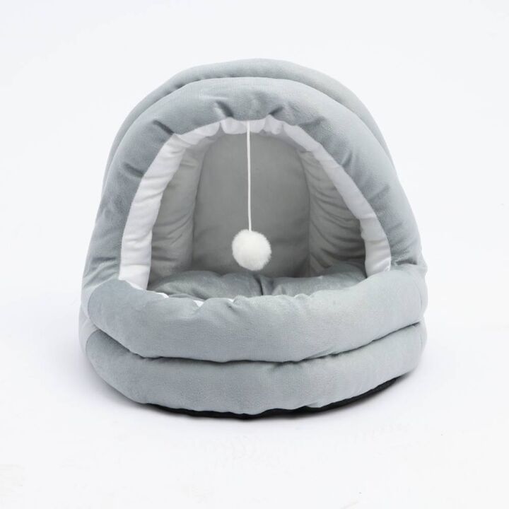 Cama Para Gatos Tipo Cueva Gris Claro Tamaño Pequeño Proline CYCPR117 Dale a tu mascota el regalo de sus sueños con la cama Cueva PROLINE. Este refugio de felpa suave y acolchado es el lugar perfecto para que tu amigo de cuatro patas disfrute de privacidad y calidez. Con su diseño semi-cerrado, tu m...