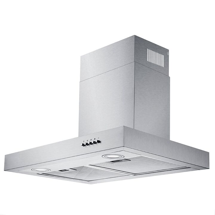 Campana aspirante de pared Salida al exterior Acero Inoxidable Luz LED Control electrónico 3 velocidades de aspiración Potencia del motor: 210 Watts 2 Filtro Anti grasa de aluminio con 3 capas Flujo de aire: 750m3/h Nivel acústico: 55dB (Se emitirá únicamente Factura B a consumidor final por las com...