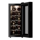 Cava de vino con capacidad de hasta 12 botellas. Color negro. Puerta con doble vidrio templado que refuerza el aislamiento térmico, evitando variaciones de temperatura y bloquea los rayos UV. Display touch con control de temperatura digital de 11° a 14° C. Posee 5 estantes de metal para acomodar has...