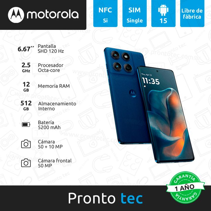 El motorola Edge 60 cuenta con un diseño super cómodo y atractivo que te sorprenderá. Con la primera pantalla Quad-Curved 1.5K con colores validados por Pantone y una terminación que inspira. Construido con cuatro capas de fibra de vidrio, combinando estilo y durabilidad con acabados en textura de c...