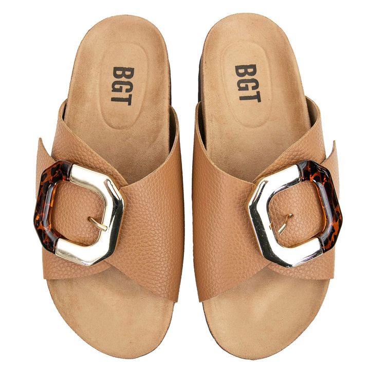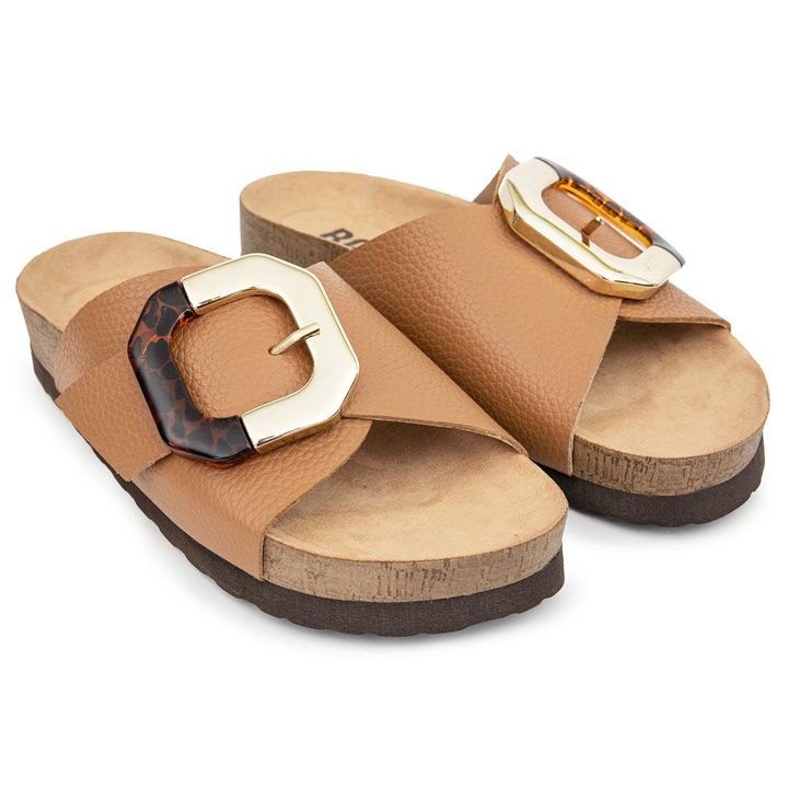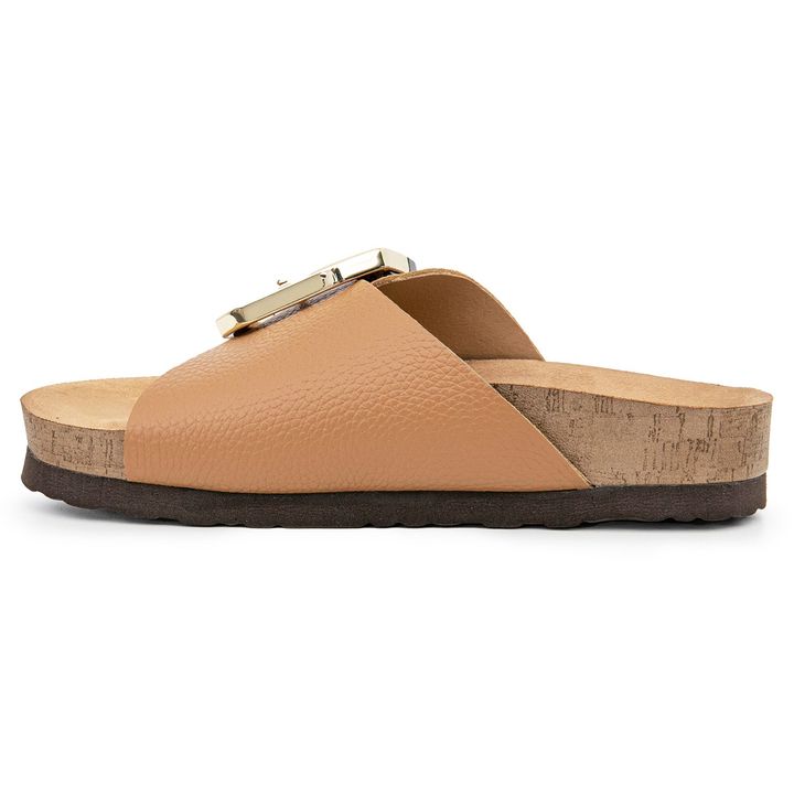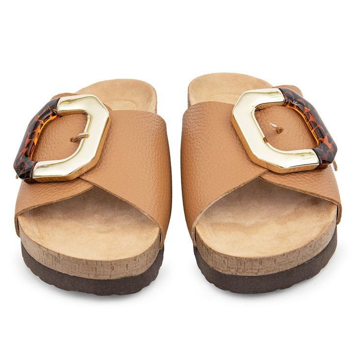 La Chinela Caliope combina frescura y estilo en cada paso. Confeccionada en 100% cuero, con base de goma antideslizante, estilo birk y una hebilla moderna, ofrece comodidad casual con un toque juvenil y divertido. - Base: Goma - Material Interno: Cuero - Material Externo: Cuero - Articulo: MCCH261...