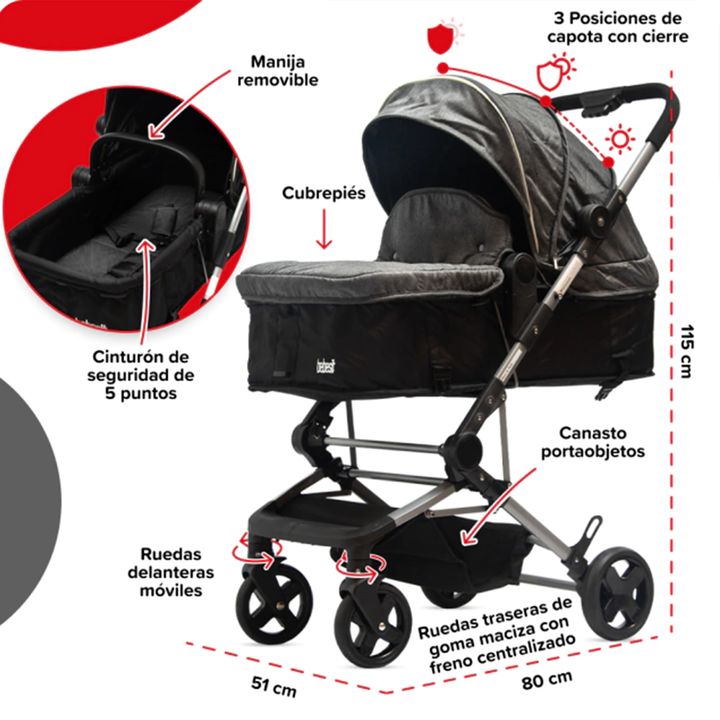Coche De Paseo Bebesit Le Lit 3 en 1 Gris Oscuro 1365ts-c