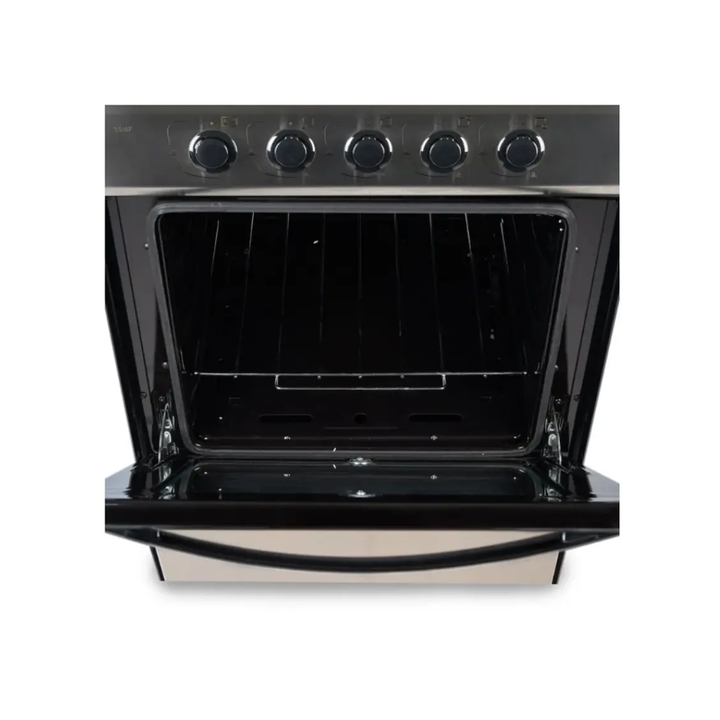 Cocina bigas de diseño clasico con autolimpiante Florencia, acero inoxidable. Cuenta con horno y parrilla Easy Cleaning, rejillas anti vuelco enlozadas, puerta visor de doble vidrio templado con freno y desmontable. Cajón parrilla rebatible.