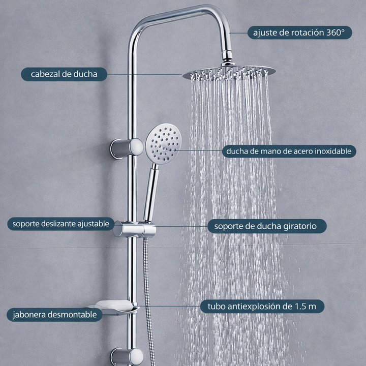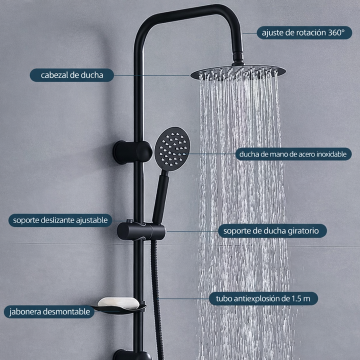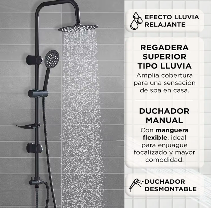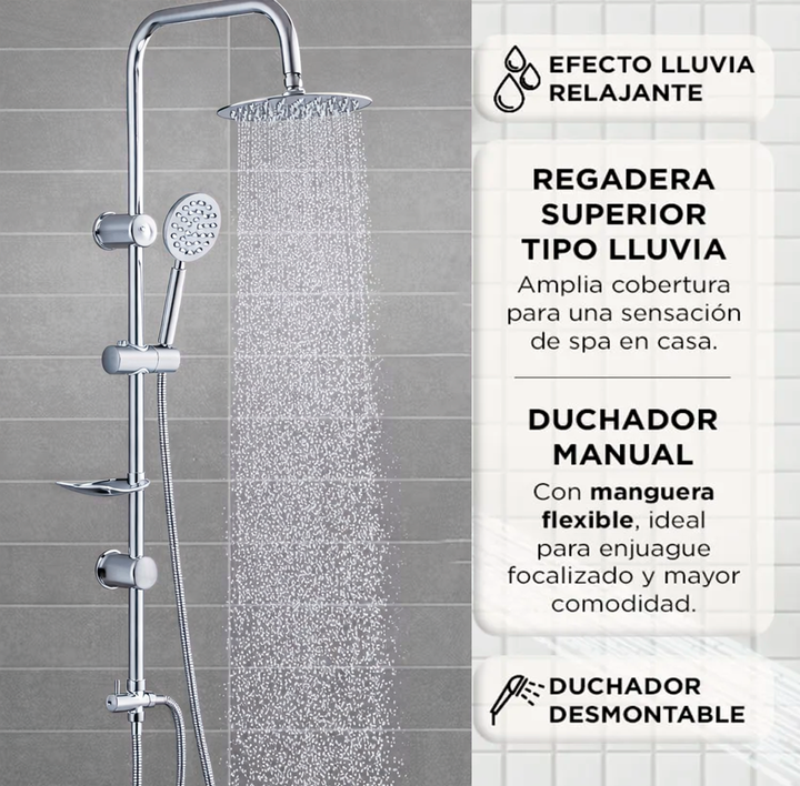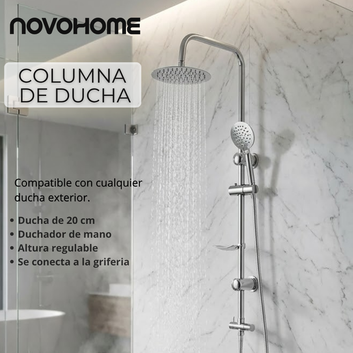 NOVOHOME COLUMNA DE DUCHA EXTERIOR CON DUCHADOR DE MANO. Columna de ducha Novohome de diseño elegante y funcional, ideal para renovar el espacio de baño con un estilo moderno y acabado sofisticado. Su estructura es compatible con cualquier ducha monocomando exterior, lo que facilita su instalación y...