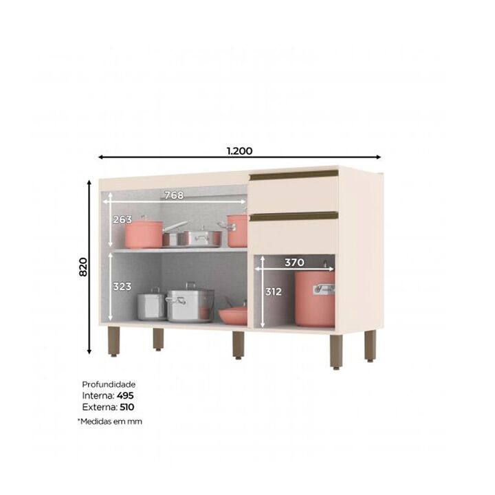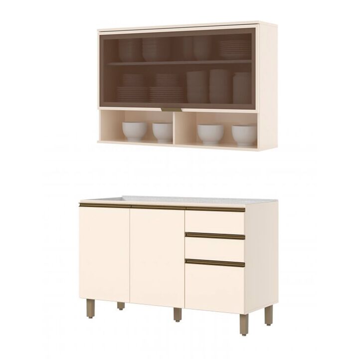 Combo Bajo Mesada + Alacena + Mesada Acero Inox Henn 1.20m C59/C66-139 Blanco