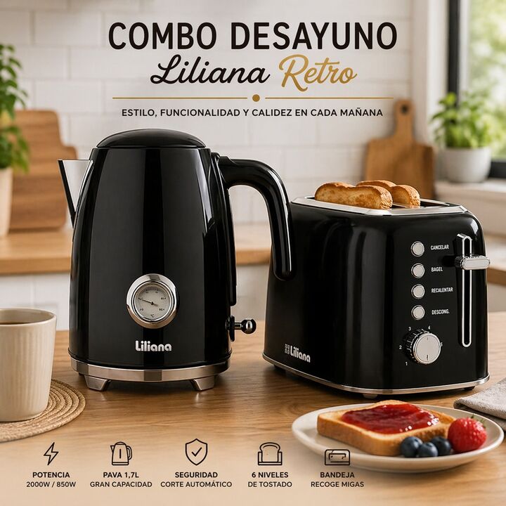 Arrancá cada mañana con el equilibrio perfecto entre diseño, practicidad y sabor gracias a este Combo Desayuno Liliana Retro. La combinación ideal de pava eléctrica y tostadora que transforma tu rutina diaria en un momento especial, ahorrándote tiempo sin resignar estilo. Pensado para quienes valora...