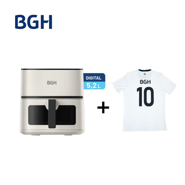 Combo Freidora de Aire BGH 5,2 Litros BAF52G24 + Camiseta BGH adidas Talle M Características principales • Producto original BGH • Incluye camiseta adidas • Garantía oficial Este combo Freidora de Aire BGH 5,2 Litros BAF52G24 + Camiseta BGH adidas Talle L es ideal para quienes buscan calidad y diseñ...