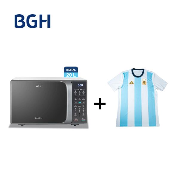 Combo Microondas BGH 20 litros Digital ECO B120DS20I + Camiseta BGH adidas Talle M Características principales • Producto original BGH • Incluye camiseta adidas • Garantía oficial Este combo Microondas BGH 20 litros Digital ECO B120DS20I + Camiseta BGH adidas Talle M es ideal para quienes buscan cal...