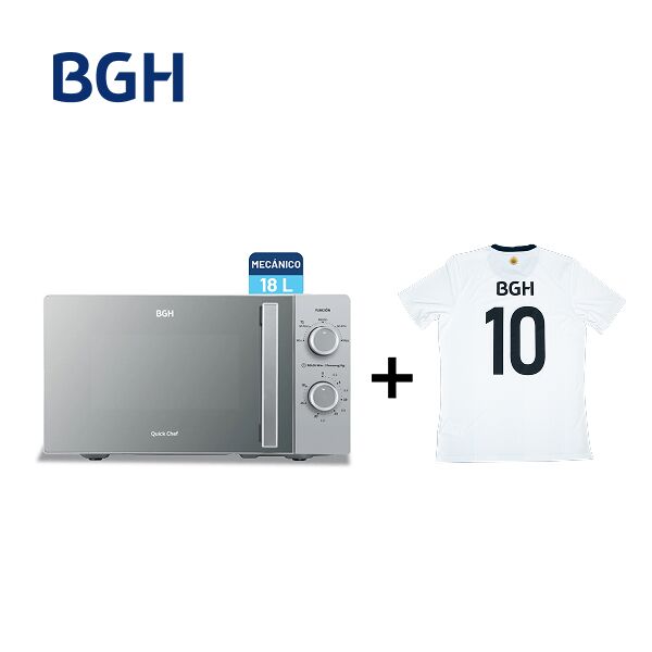 Combo Microondas BGH Mecánico 18L Silver Espejado B118MS25 + Camiseta BGH adidas Talle M Características principales • Producto original BGH • Incluye camiseta adidas • Garantía oficial Este combo Microondas BGH Mecánico 18L Silver Espejado B118MS25 + Camiseta BGH adidas Talle M es ideal para quiene...