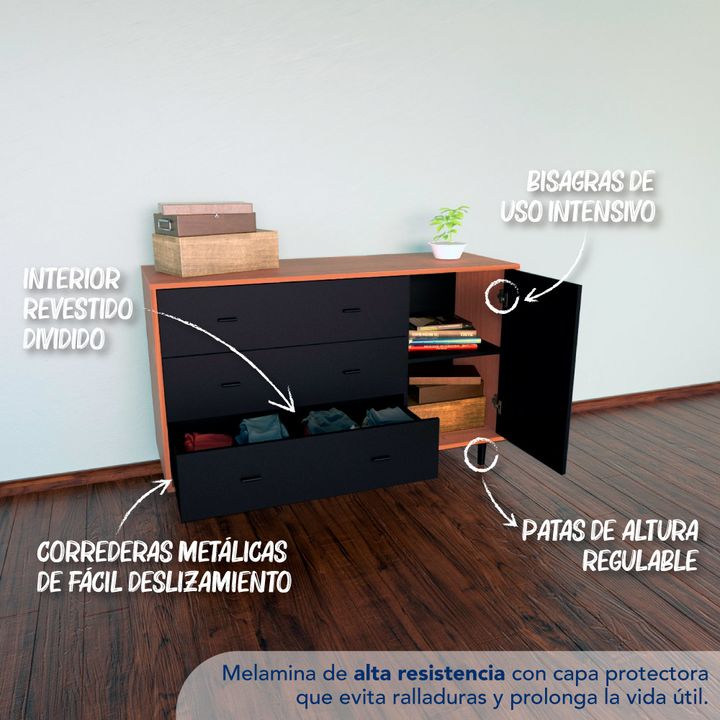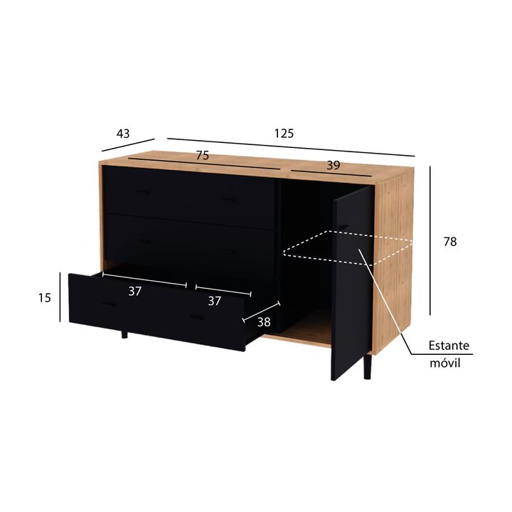 Cómoda Centro Estant Mallorca Negra Alto 78cm Ancho 125cm