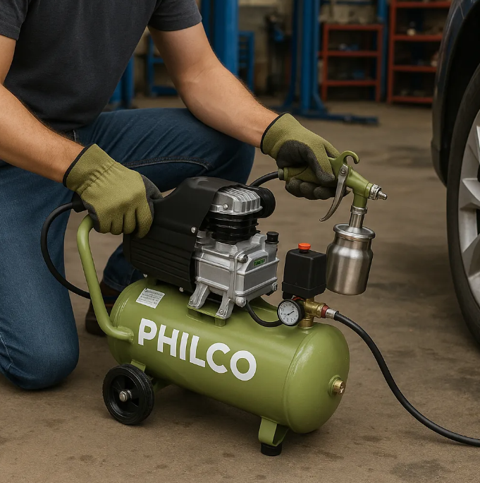 COMPRESOR AIR 25LT PHILCO VERDE PC25ASE1P El Compresor Air 25 L Philco en color verde es una herramienta versátil diseñada para tareas de inflado, limpieza con aire y trabajos de bricolaje en el hogar o taller. Su tanque de 25 litros y motor eficiente permiten un rendimiento constante y confiable. C...