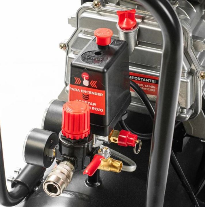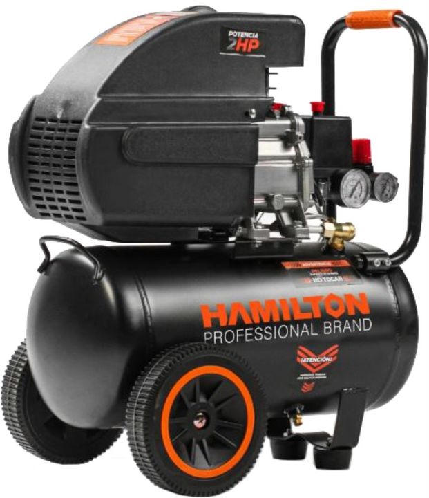 COMPRESOR AIRE HCDM001 24L 2HP HAMILTON Compresor de aire 24L 2hp Hamilton HCDM001 monocilindrico Datos Técnicos: - Potencia: 2 HP (1500W) - Velocidad en vacío: 2850 rpm - Ruedas de transporte - Tornillo para purga - Flujo de aire: 206 L/MIN - Presión Máxima: 8 bar (115 PSI) - Capacidad: 24 Litros -...
