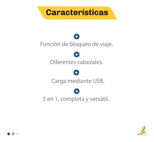 Modelo: CBCL604 Marca: Kanji Garantía: 12 meses CARACTERÍSTICAS: - 5 en 1: completa y versátil. - Función de bloqueo de viaje. - Resistente al agua IPX6 - Diferentes cabezales. - Corte desmontable. - Lámina única. - Microrecortado. - Recortador de nariz. - Cuchilla T. - Pantalla LED. - Carga mediant...