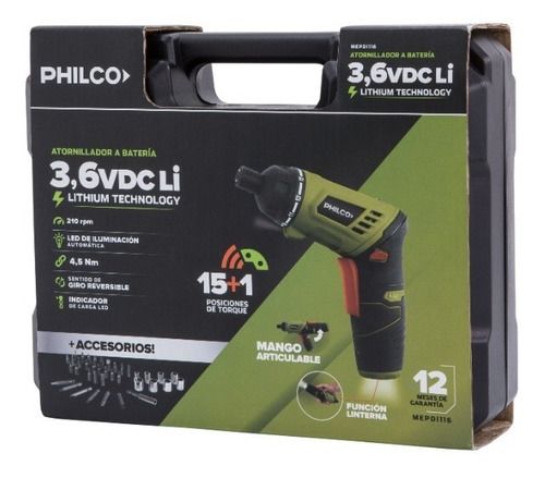Destornillador Inalámbrico Philco Di331p 3.6v ¿Por qué elegir el DI331P? El destornillador inalámbrico Philco DI331P es la herramienta esencial para las tareas cotidianas del hogar, perfecto para el armado de muebles y una inmensa variedad de proyectos. Cuenta con una fuerza de torque de 4.5 Nm, 210...
