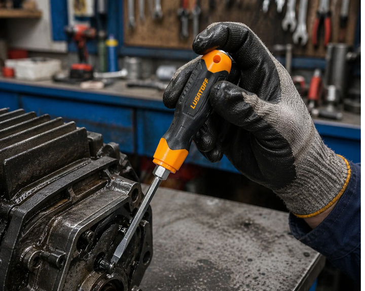 DESTORNILLADOR PLANO PASANTE 6X100 MM LUSQTOFF L6536 • Mango ergonómico y antideslizante • Punta imantada • Punta plana • Cuerpo hexagonal con casquillos para golpes • Cromo vanadio Garantía 6 meses