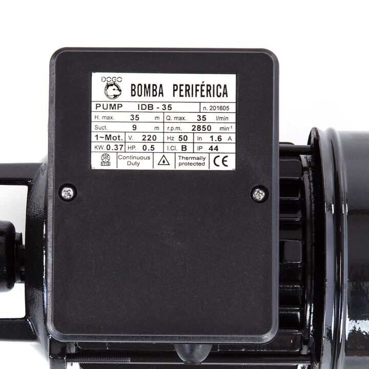 Electrobomba Periférica IDB 35 Dogo 1/2 HP: ¡Potencia y Eficiencia para tu Hogar!La Electrobomba Periférica IDB 35 Dogo es una solución robusta y confiable para tus necesidades de bombeo de agua. Diseñada para uso doméstico e industrial, esta bomba te ofrece un alto caudal con un bajo consumo eléctr...