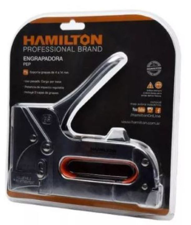 ENGRAPADORA PEP HAMILTON ENGRAPADORA Sólida fabricación en acero, con terminación cromada. - Apta para uso en el hogar y la oficina. - Trabaja con grapas de 4 a 8 mm. x 11,3 mm. Garantía 12 meses Origen China