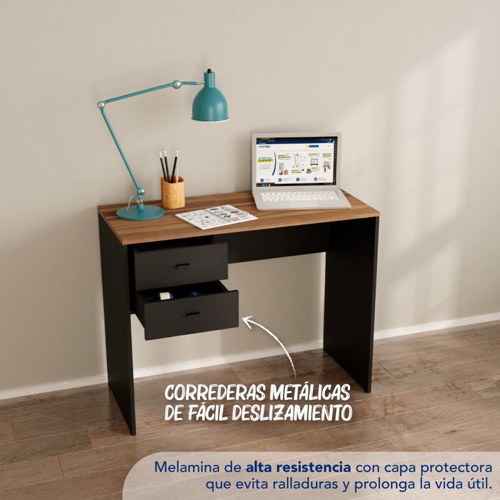 ESCRITORIO CENTRO ESTANT EVO NEGRO PARAISO ANCHO: 100CM MODELO: SC8000NP Escritorio de melamina de un tamaño ideal para ubicarlo en cualquier rincón de la casa. Contiene dos cajones para organizar tus apuntes o material de trabajo. Podes combinarlo con nuestros estantes flotantes para poder, también...