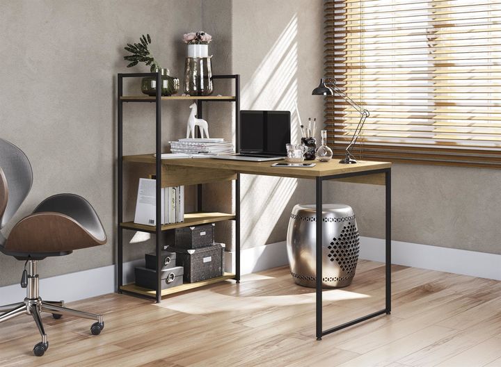 Escritorio Con Estantería Estilo Industrial Atma Home ATH-LI010-FRPRF Caracteristicas: Material de la estructura: hierro Material de los estantes: madera MDP Patas Regulables: Si Peso bruto: 24,8 Kg Peso neto: 23,789 Kg Dimensiones: Alto: 122 cm Ancho: 136 cm Profundidad: 64 cm Garantia: 12 Meses La...